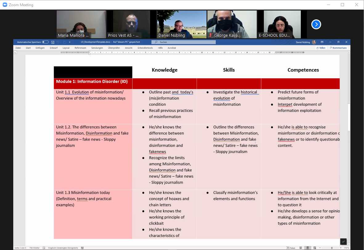 The AdultMisInfo project partners held an online meeting on January 18th! During this meeting, we covered critical specifics of our Training Modules (which are part of OI2) as well as