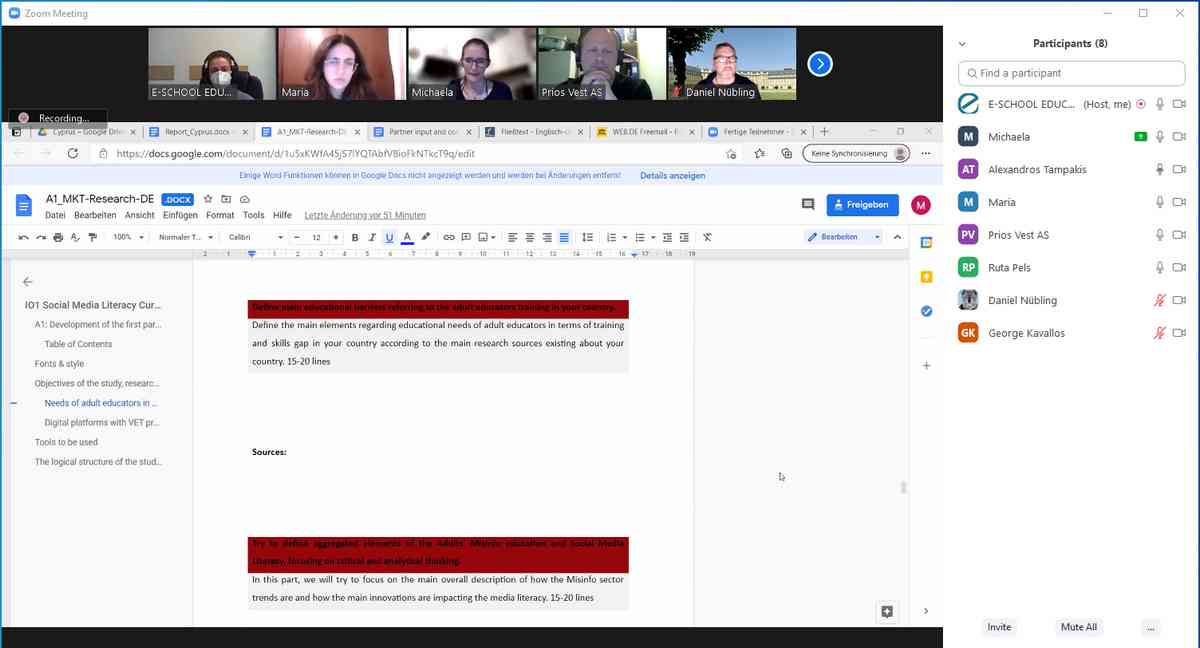 On the 2nd of June, 2021, the 8th Online Meeeting of our project 'AdultMisinfo'(Adult Misinformation: Social Media Literacy, Critical and Analytical Thinking as means to combat Fake News and Social